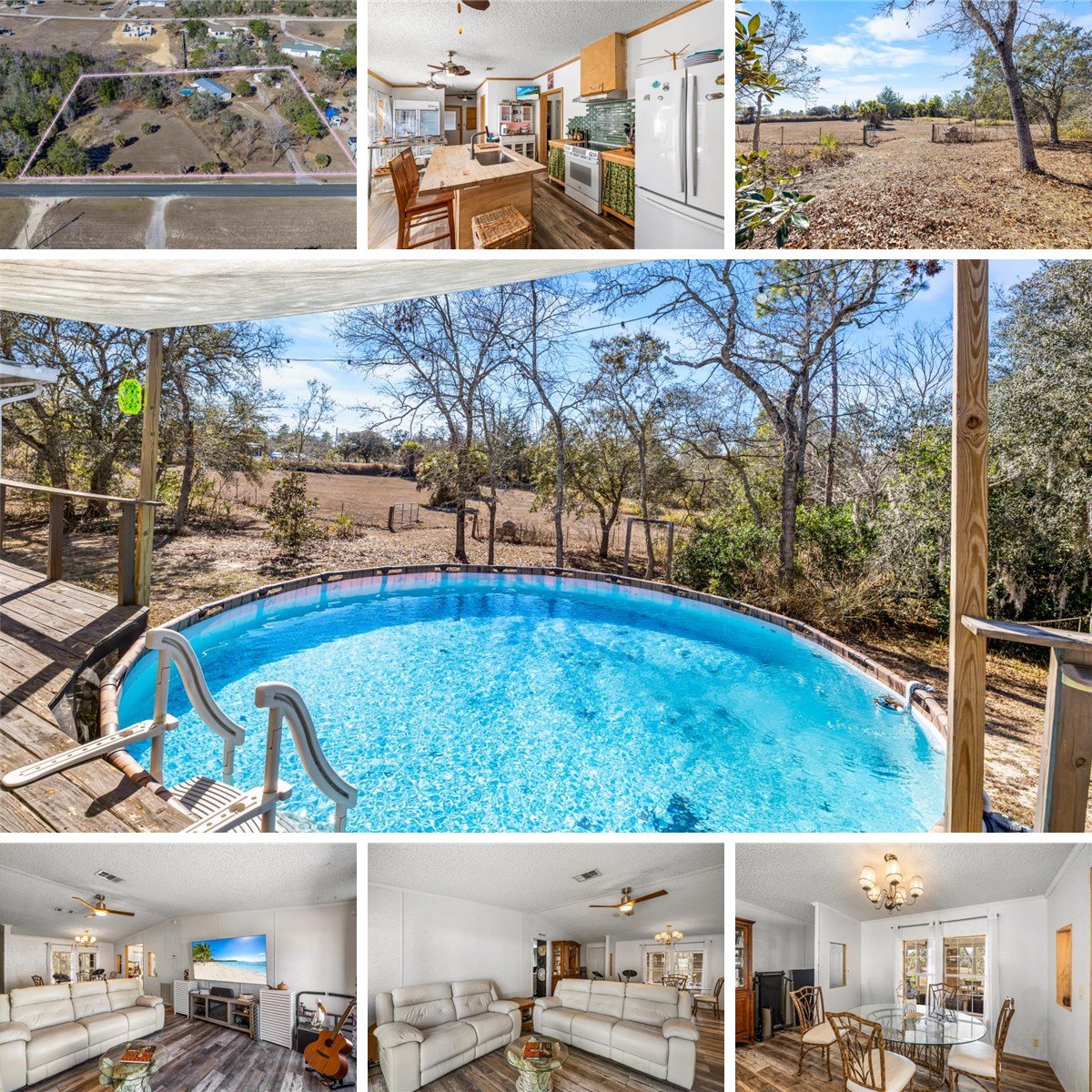 Country Living with City Conveniences on 2.3 Acres! Enjoy wide-open space, privacy, and endless possibilities on this BEAUTIFUL 2.3-ACRE PROPERTY offering a true country setting with city conveniences close by. Zoned AR-2, the land allows ONE GRAZING ANIMAL PER ACRE and is already equipped with a FENCED PASTURE, TWO HORSE STALLS WITH WATER AND ELECTRIC, A GREENHOUSE WITH ELECTRIC, and A STAND-ALONE GARAGE WITH WATER AND POWER-perfect for animals, gardening, hobbies, or future expansion. The property is rich with MATURE FRUIT TREES including lemon, orange, mango, and aloe, and has NEVER HAD CHEMICALS USED, making it ideal for organic gardening and sustainable living. The 3-BEDROOM, 2-BATH HOME is beautifully updated and move-in ready with a SPLIT FLOOR PLAN and VINYL FLOORING THROUGHOUT THE MAIN LIVING AREAS. The PRIMARY SUITE features fresh paint, TWO WALK-IN CLOSETS, and a NEWLY REMODELED ENSUITE BATHROOM with a FREESTANDING SOAKING TUB and SEPARATE SHOWER. Two additional bedrooms share a NEWLY REMODELED GUEST BATHROOM with a FRAMELESS GLASS SHOWER ENCLOSURE and VESSEL SINK VANITY. The KITCHEN offers CUSTOM CABINETRY, BUTCHER BLOCK COUNTERTOPS, NEWER APPLIANCES, A FOOD PANTRY, and an EAT-IN DINING AREA. An INSIDE LAUNDRY ROOM WITH MUD ROOM adds everyday functionality. Relax in the SCREENED FLORIDA ROOM WITH VINYL WINDOWS, which opens to a WOOD DECK overlooking the ABOVE-GROUND POOL INSTALLED IN 2024 (POOL CAN BE REMOVED AT BUYER'S REQUEST). Major updates include a METAL ROOF INSTALLED IN 2022, AC SYSTEM INSTALLED IN 2018, NEW CRAWL SPACE DUCTWORK IN 2025, and ATTIC DUCTWORK INSPECTED AND SANITIZED IN 2025. The property has COUNTY WATER AND A SEPTIC SYSTEM and is CONVENIENTLY LOCATED NEAR SHOPPING, DINING, AND LOCAL AMENITIES-offering the perfect balance of PRIVACY AND ACCESSIBILITY.