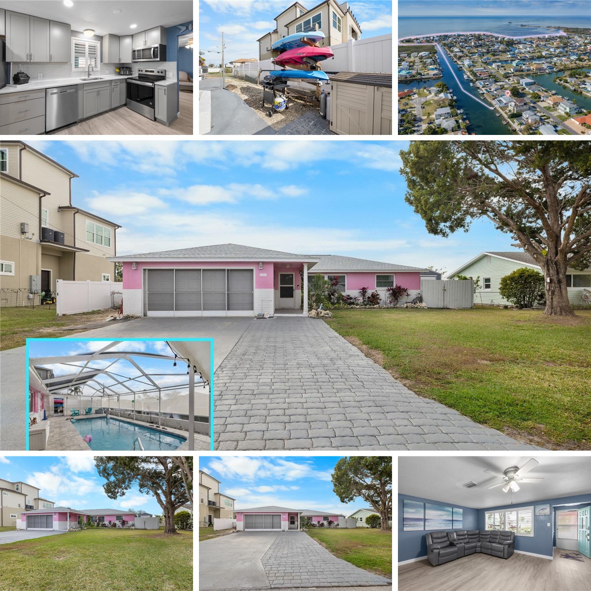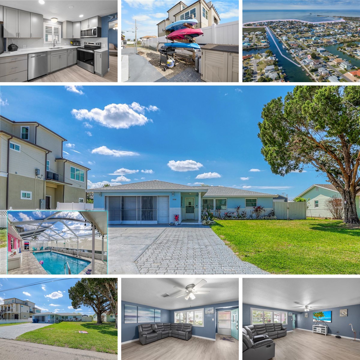 Enjoy true Florida waterfront living in this completely remodeled 3-bedroom, 2-bath home situated on an oversized 8, 600 SF lot with 77 feet of concrete seawall and direct Gulf accessjust minutes to open water. Boating enthusiasts will appreciate the new concrete seawall cap, floating wood dock, dual davits with boat carrier, and waterside washing station with electric and water. The interior features a desirable split and open floor plan with luxury wood-look vinyl plank flooring throughout. The updated kitchen showcases gray shaker cabinetry, quartz countertops, stainless steel appliances, and plantation shutters, flowing seamlessly into the living area for effortless entertaining. Two guest bedrooms share a beautifully remodeled bathroom with a walk-in shower, glass enclosure, and quartz-topped vanity. The private primary suite is located at the far end of the home and includes a walk-in closet, spa-style shower with glass enclosure, and marble-topped vanity. Additional living space is found in the enclosed 480 SF rear porch, offering a flexible office and bonus entertainment area, all overlooking the screened concrete pool with pavered deck. Outdoor features continue with a fully fenced yard, concrete waterside seating area, two storage sheds, and ample parking with a paved driveway accommodating 6+ vehicles. Major updates include a new roof (2024), impact windows (20222023), new water heater (2023), central AC (2016), plus two mini-split systems (primary bedroom 2024, rear bonus room 2025). The screened 2-car garage with interior laundry room adds convenience and storage. These upgrades contribute to low homeowners insurance at approximately 1, 747 dollars annually. This exceptional Gulf-access pool home offers the perfect blend of comfort, boating lifestyle, and outdoor livingideal as a primary residence, vacation home, or waterfront investment. This property has FHA transferable loan of 2.99% for 225k. Hernando Beach is a vibrant waterfront community that offers the best of coastal livingboating, kayaking, paddleboarding, fishing, and more. Just minutes from the world-famous Weeki Wachee Springs, residents also enjoy close proximity to shopping, dining, hospitals, and top-rated schools. The community is golf cart friendly and allows short-term rentals with no HOA, no deed restrictions, making it perfect for full-time residents, part-time snowbirds, or investors. The Suncoast Parkway offers easy commuting to Tampa, Brooksville, and beyond.